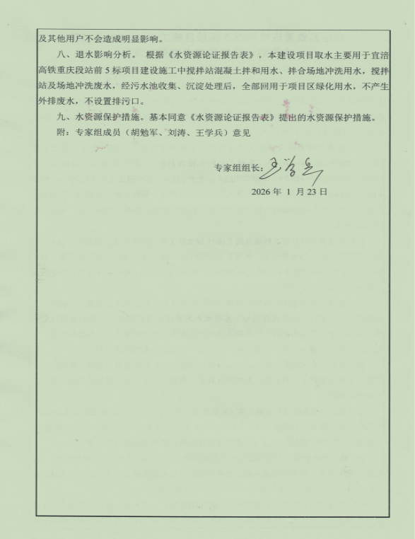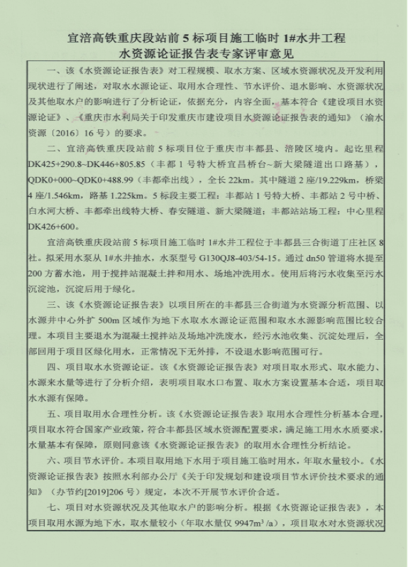附件:宜涪高鐵重慶段站前5標項目施工臨時1#水井工程水資源論證報告表專家評審意見