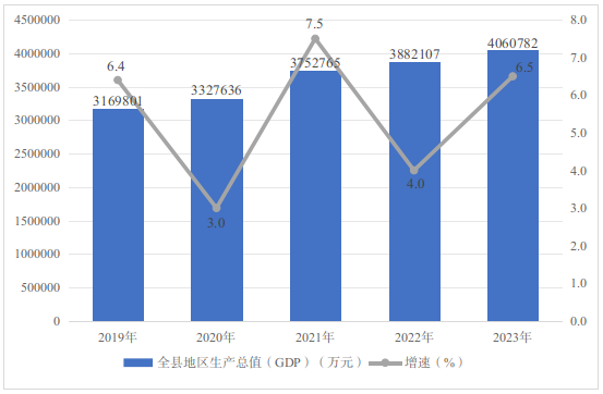 2023年,全縣上下堅持以習近平新時代中國特色社會主義思想為指導,全面貫徹黨的二十大精神,認真落實市委、市政府決策部署,堅持穩(wěn)中求進工作總基調(diào),立足新發(fā)展階段,完整、準確、全面貫徹新發(fā)展理念,全縣生產(chǎn)供給持續(xù)向好,市場需求穩(wěn)中有升,民生福祉不斷改善,經(jīng)濟運行進中趨好。
