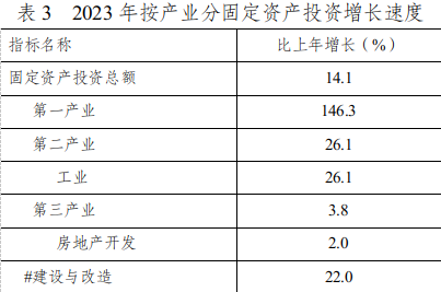 全年固定資產(chǎn)投資總額比上年增長14.1%。其中,基礎(chǔ)設(shè)施投資增長1.1%,工業(yè)投資增長26.1%,民間投資增長17.4%。分產(chǎn)業(yè)看,第一產(chǎn)業(yè)投資比上年增長146.3%;第二產(chǎn)業(yè)投資比上年增長26.1%;第三產(chǎn)業(yè)投資比上年增長3.8%。全年房地產(chǎn)開發(fā)投資572084萬元,比上年增長2.0%。