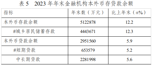 年末全縣金融機構(gòu)本外幣存款余額5122878萬元,比上年末增長12.2%,其中,城鄉(xiāng)居民儲蓄存款余額4443671萬元,增長12.3%。金融機構(gòu)本外幣貸款余額2951560萬元,比上年末增長5.9%,其中,短期貸款余額653579萬元,增長5.2%;中長期貸款余額2281998萬元,增長5.6%。