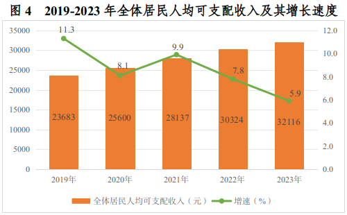 ? ? 全年全體居民人均可支配收入32116元,比上年增長5.9%。其中,工資性收入15232元,比上年增長6.2%;經(jīng)營凈收入7873元,比上年增長5.6%;財產(chǎn)凈收入1737元,比上年增長5.8%;轉(zhuǎn)移凈收入7274元,比上年增長5.7%。分城鄉(xiāng)看,城鎮(zhèn)常住居民人均可支配收入43439元,比上年增長4.1%;農(nóng)村常住居民人均可支配收入20317元,比上年增長7.9%。