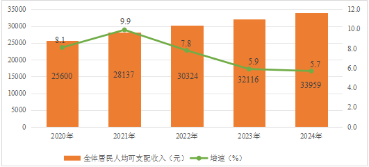 圖3??2020-2024年全體居民人均可支配收入及其增長速度