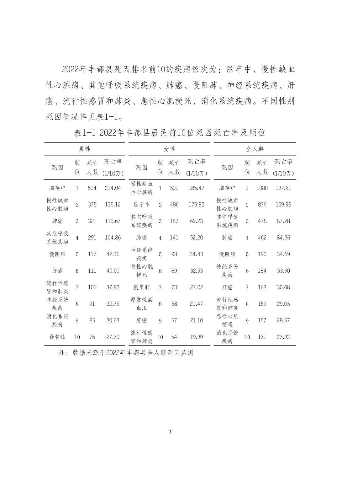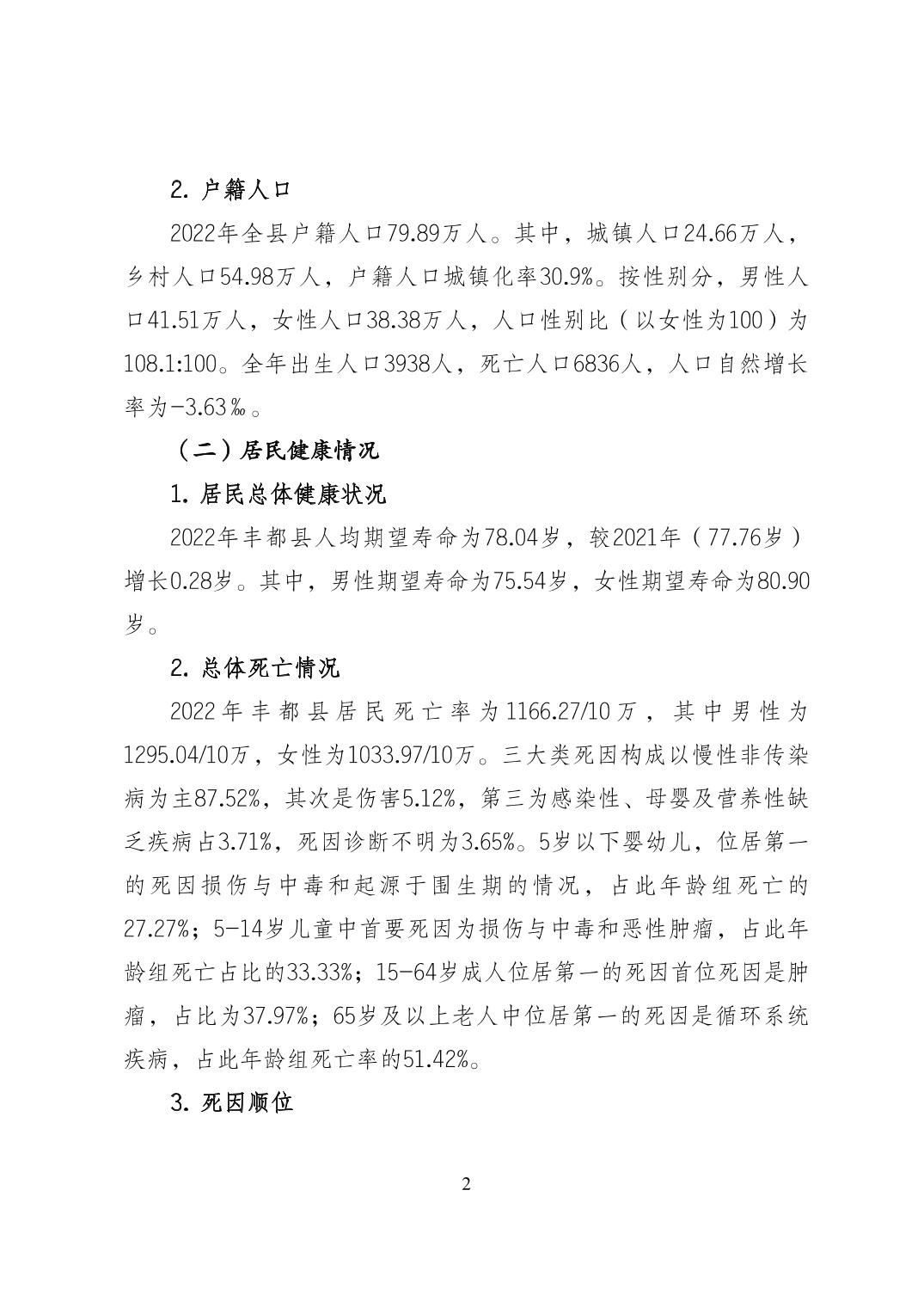 重慶市豐都縣2022年度居民健康狀況報告