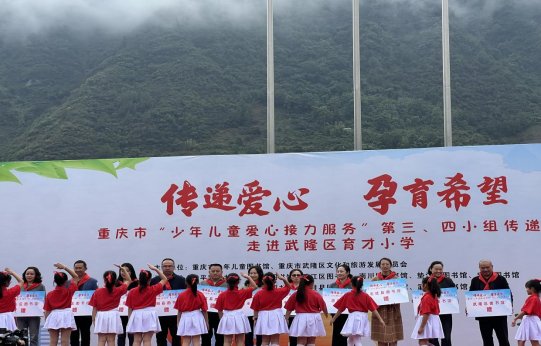 17日上午,重慶市“少年兒童愛心接力服務”傳遞活動走進武隆區育才小學,活動現場,重慶市“少年兒童愛心接力服務”傳遞活動第三、四小組成員館梁平區、酉陽縣、黔江區、南川區、墊江縣、豐都縣、忠縣、彭水縣、石柱縣、秀山縣、武隆區等11個圖書館為學校捐贈了種類豐富的愛心圖書和文體用品,并開展了精彩的講座、展覽、非物質文化遺產體驗和智慧閱讀活動。此次傳遞活動以圖書接力的形式把閱讀資源送到青少年兒童身邊,實現了圖書資源跨區域跨小組傳遞與共享。該校的孩子們也精心準備了誦讀、舞蹈等節目來回報社會各界的重教之舉。?