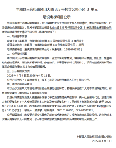豐都縣三合街道名山大道335號(hào)榨菜公司小區(qū) 3 單元增設(shè)電梯項(xiàng)目公示