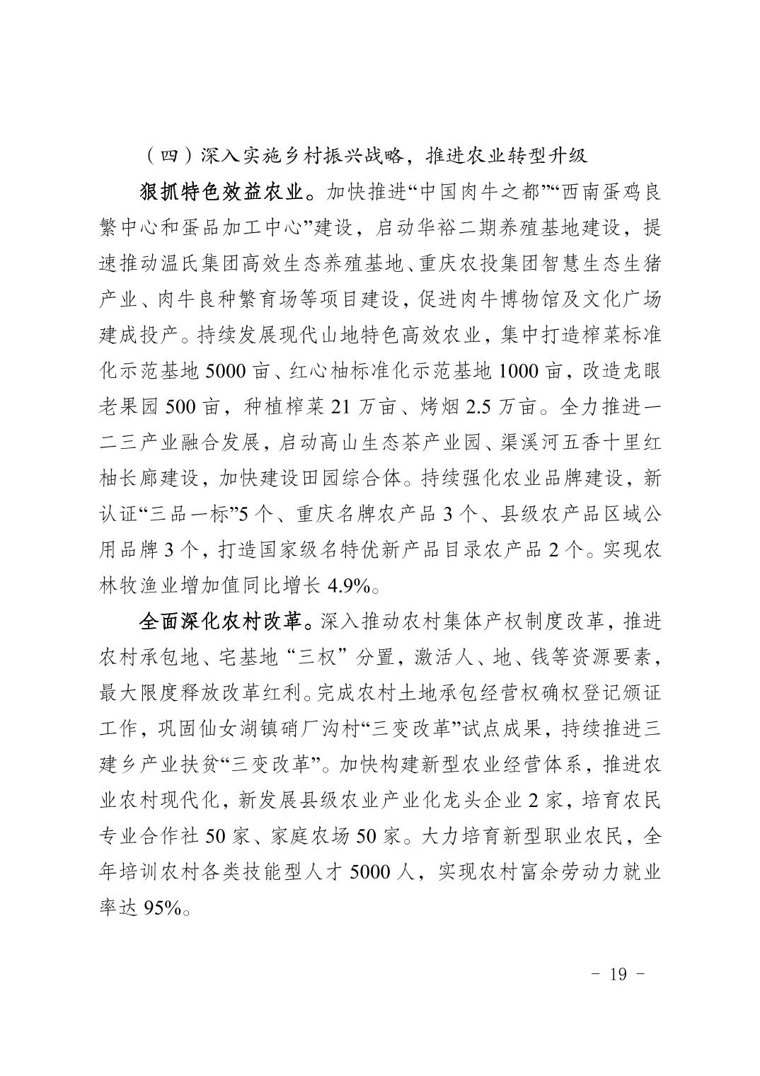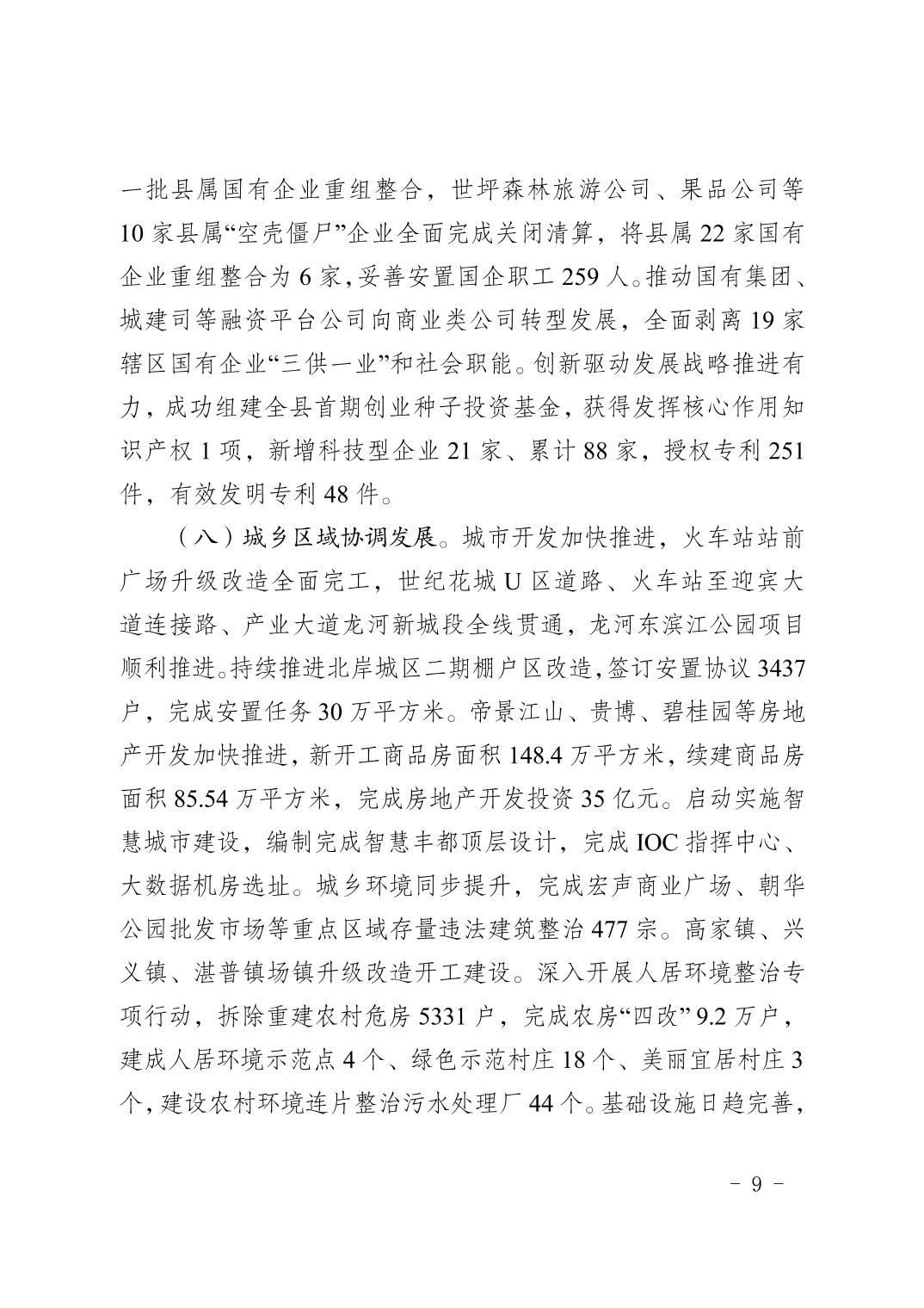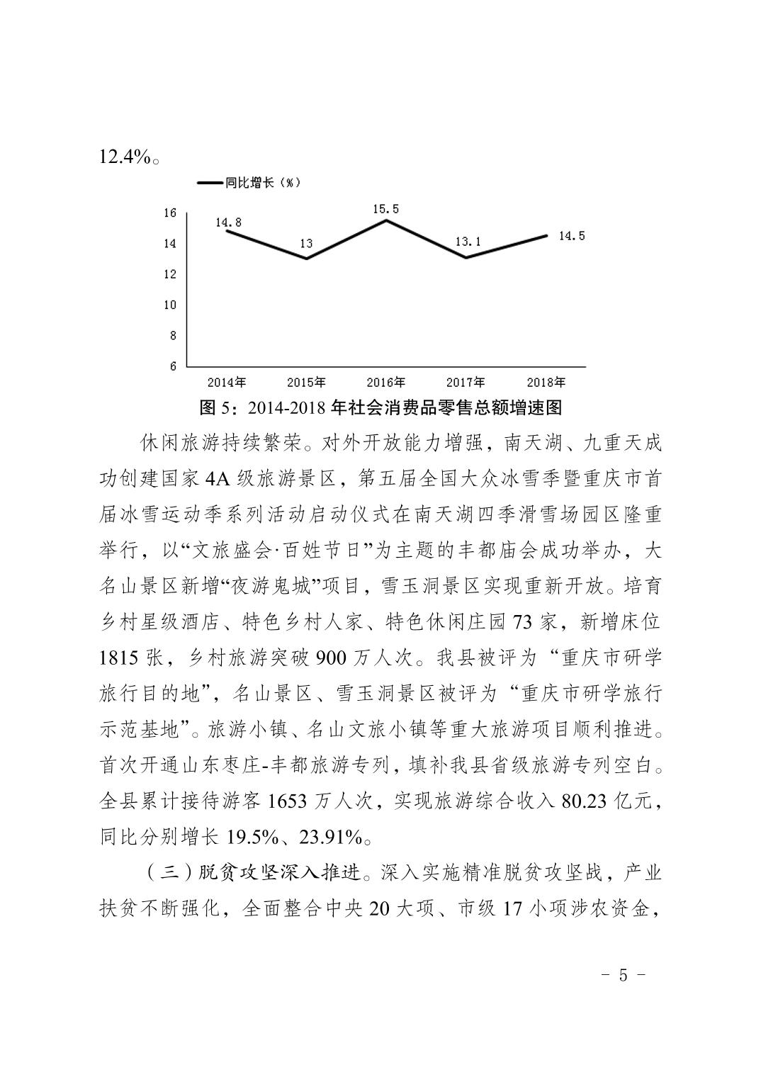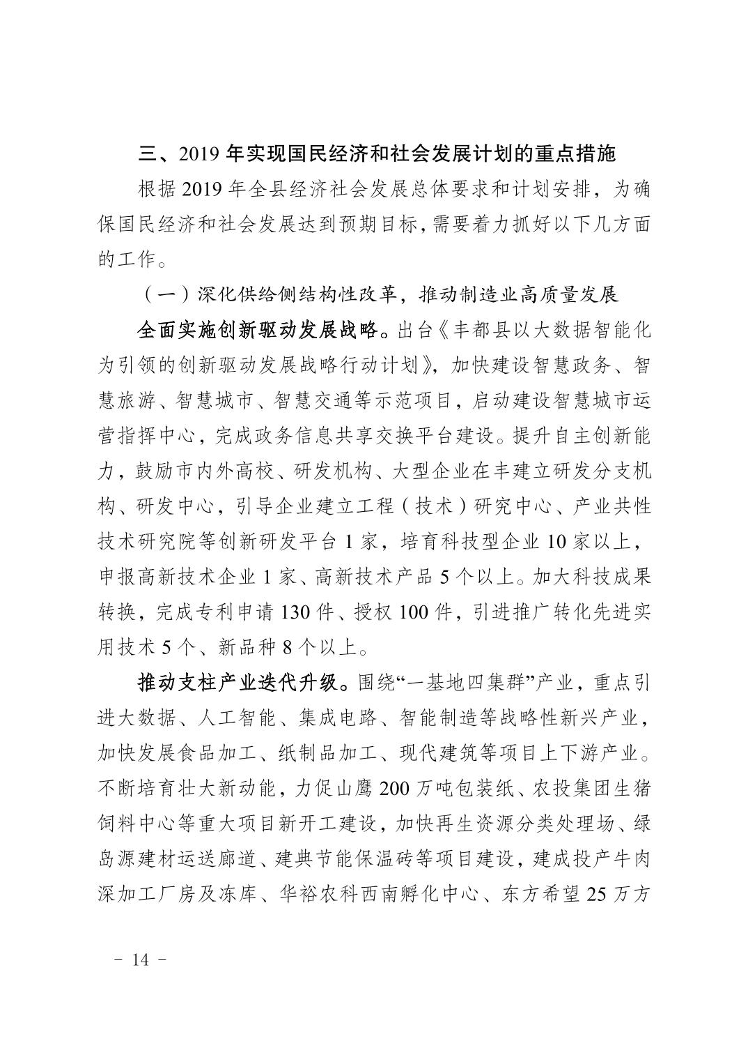 豐都縣2018年國民經濟和社會發展計劃執行情況及2019年國民經濟和社會發展計劃草案的報告