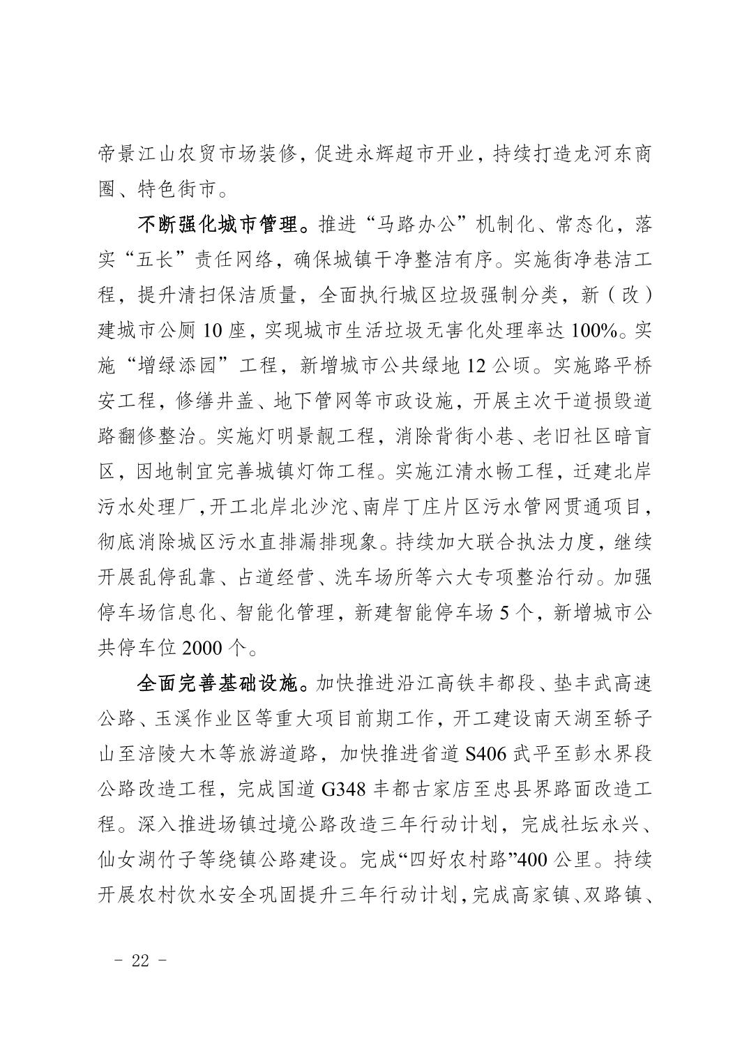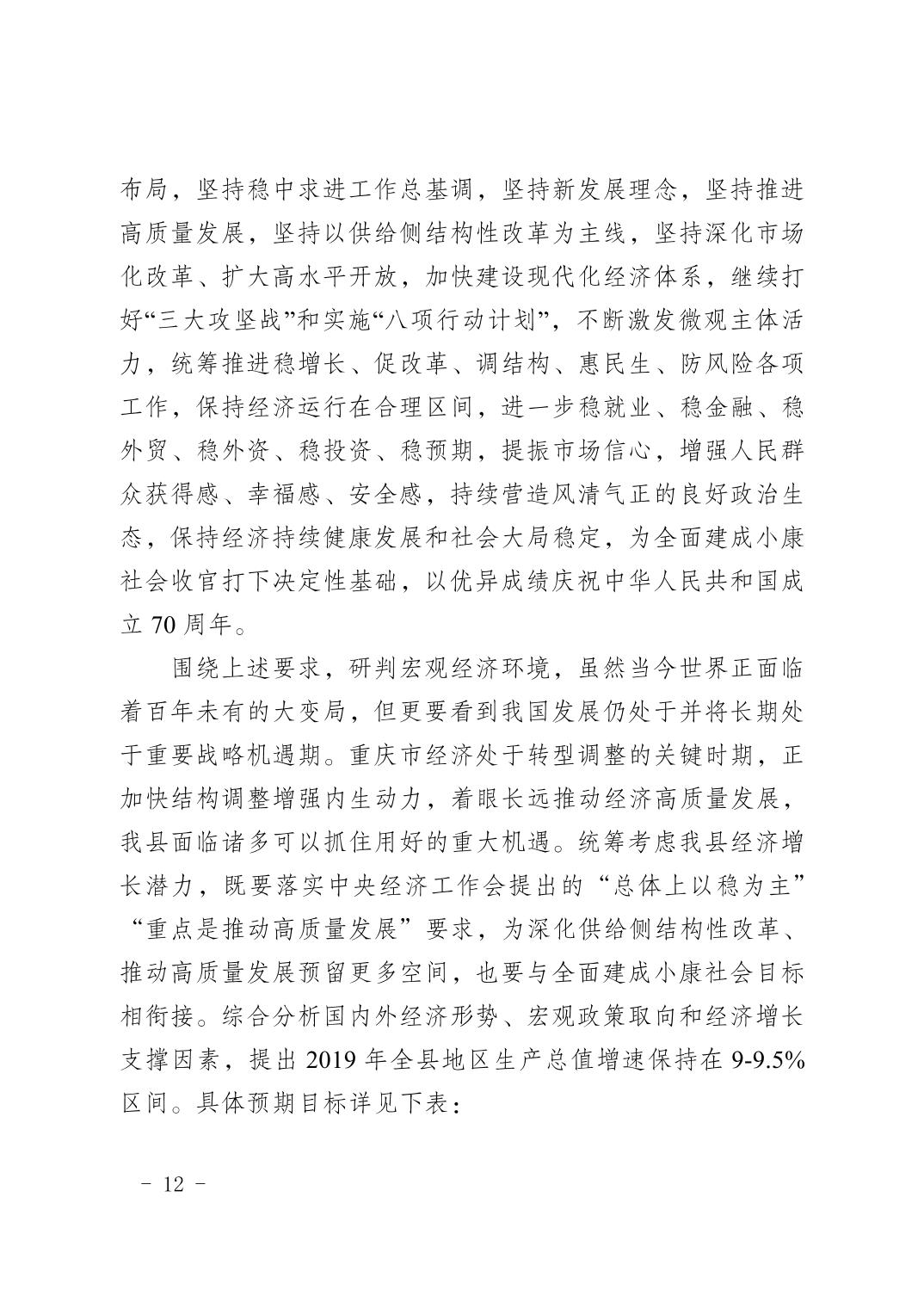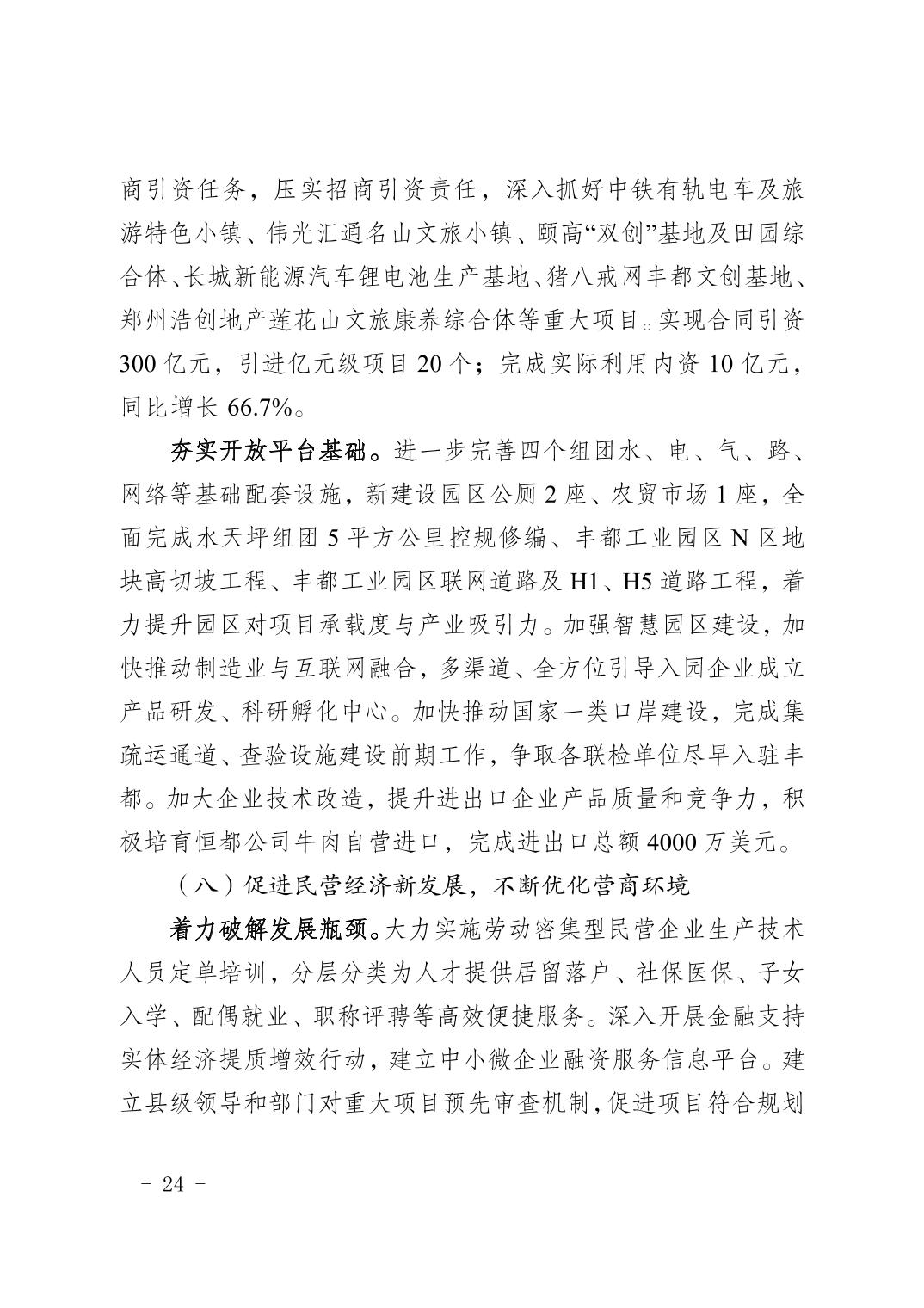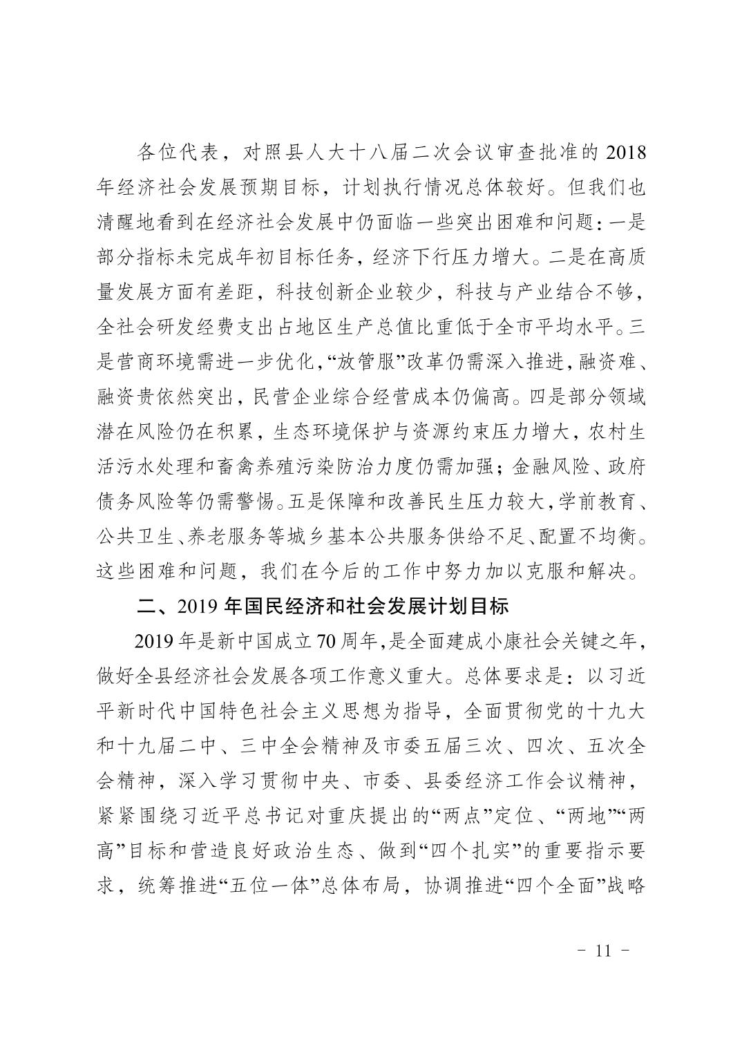 豐都縣2018年國民經濟和社會發展計劃執行情況及2019年國民經濟和社會發展計劃草案的報告
