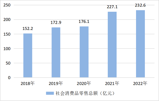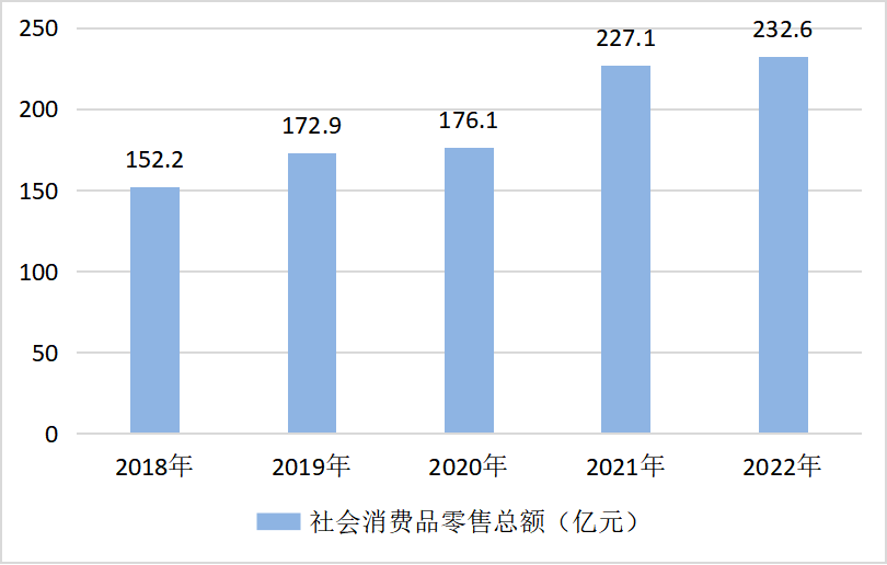 圖7? 2018—2022年社會消費品零售總額完成情況