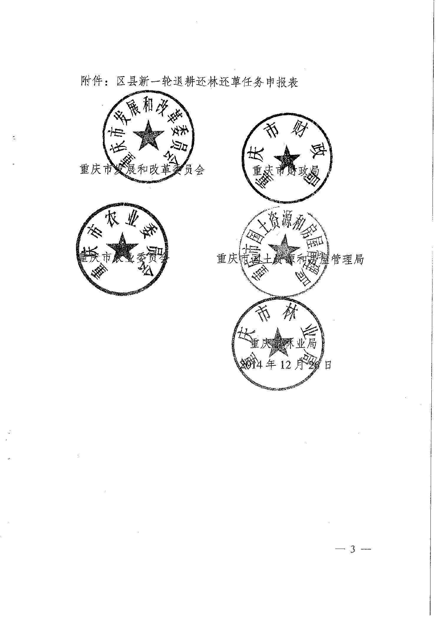 重慶市發(fā)展和改革委員會(huì) 重慶市財(cái)政局 重慶市農(nóng)業(yè)委員會(huì) 重慶市國(guó)土資源和房屋管理局 重慶市林業(yè)局關(guān)于轉(zhuǎn)發(fā)《新一輪退耕還林還草總體方案》的通知